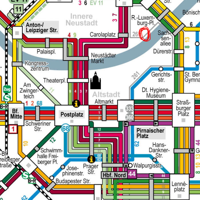 Sowohl mit dem öffentlichen Nahverkehr, aber auch fußläufig, könnt Ihr die Stadt mühelos erkunden. Von unserer Ferienwohnung aus erreicht Ihr ebenfalls auch die großartige Umgebung Dresdens mit Pillnitz, Meißen und der Sächsischen Schweiz.